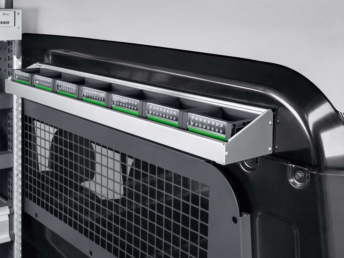Mid-size vans are extremely versatile. Whether as a panel van, with a box body or with a flatbed - there are almost no limits to the possibilities for individual applications. And they must always be equipped as optimum commercial vehicles. Whatever the reason you have for converting your delivery van into a service vehicle, we provide the right solution for every professional application. You don’t always have to have a truck to create a lot of storage space in your mobile workshop.